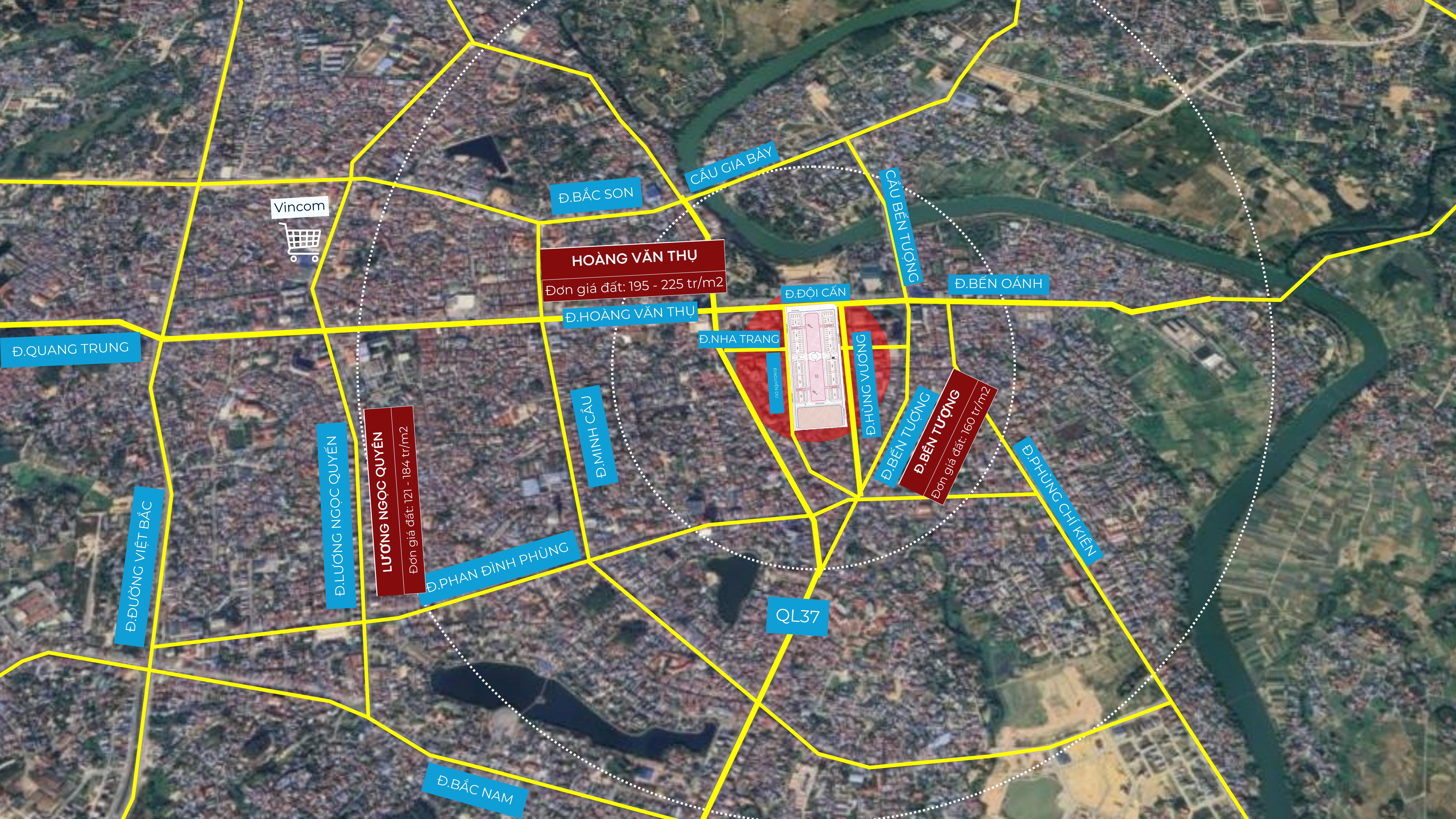 Dự án sở hữu mặt bằng vàng khi nằm đúng vị trí “điểm kết nối trung tâm”, bốn phía đều tiếp cận nhanh chóng đến những tuyến phố lớn, khu dân cư lâu đời, các trung tâm thương mại và hệ thống tiện ích hiện hữu. Đặc biệt, dự án nằm sát Quảng trường Võ Nguyên Giáp – nơi diễn ra hầu hết các sự kiện, lễ hội và hoạt động cộng đồng quy mô của tỉnh, tạo nên lợi thế thương mại vượt trội mà không vị trí nào có được.
