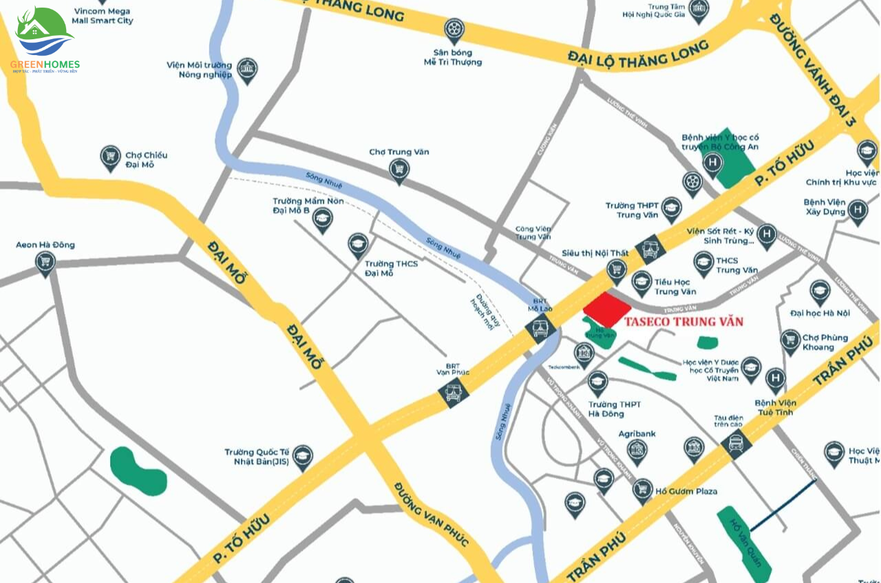 Taseco Trung Văn là tổ hợp bất động sản cao cấp do Công ty Cổ phần Bất động sản Taseco Land phát triển, tọa lạc tại vị trí đắc địa trên trục đường Tố Hữu – Trung Văn, quận Nam Từ Liêm. Đây được xem là khu vực lõi phát triển năng động bậc nhất phía Tây Hà Nội, nơi tập trung hạ tầng hiện đại, cộng đồng dân cư trí thức và tiềm năng gia tăng giá trị bền vững theo thời gian.