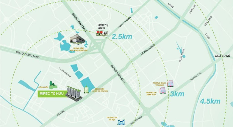 Từ Mipec Tố Hữu, cư dân có thể dễ dàng di chuyển đến các khu vực trung tâm cũng như các quận lân cận như Hà Đông, Thanh Xuân hay Nam Từ Liêm. Đây là khu vực đang được đầu tư mạnh về hạ tầng với nhiều tuyến đường lớn và hệ thống giao thông công cộng hiện đại, góp phần rút ngắn thời gian di chuyển và nâng cao chất lượng sống.
